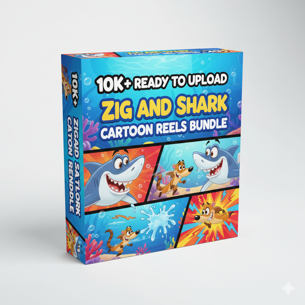 The 10K+ Ready-to-Upload Zig & Shark Cartoon Reels Bundle is your ultimate solution for building a high-engagement cartoon content page.